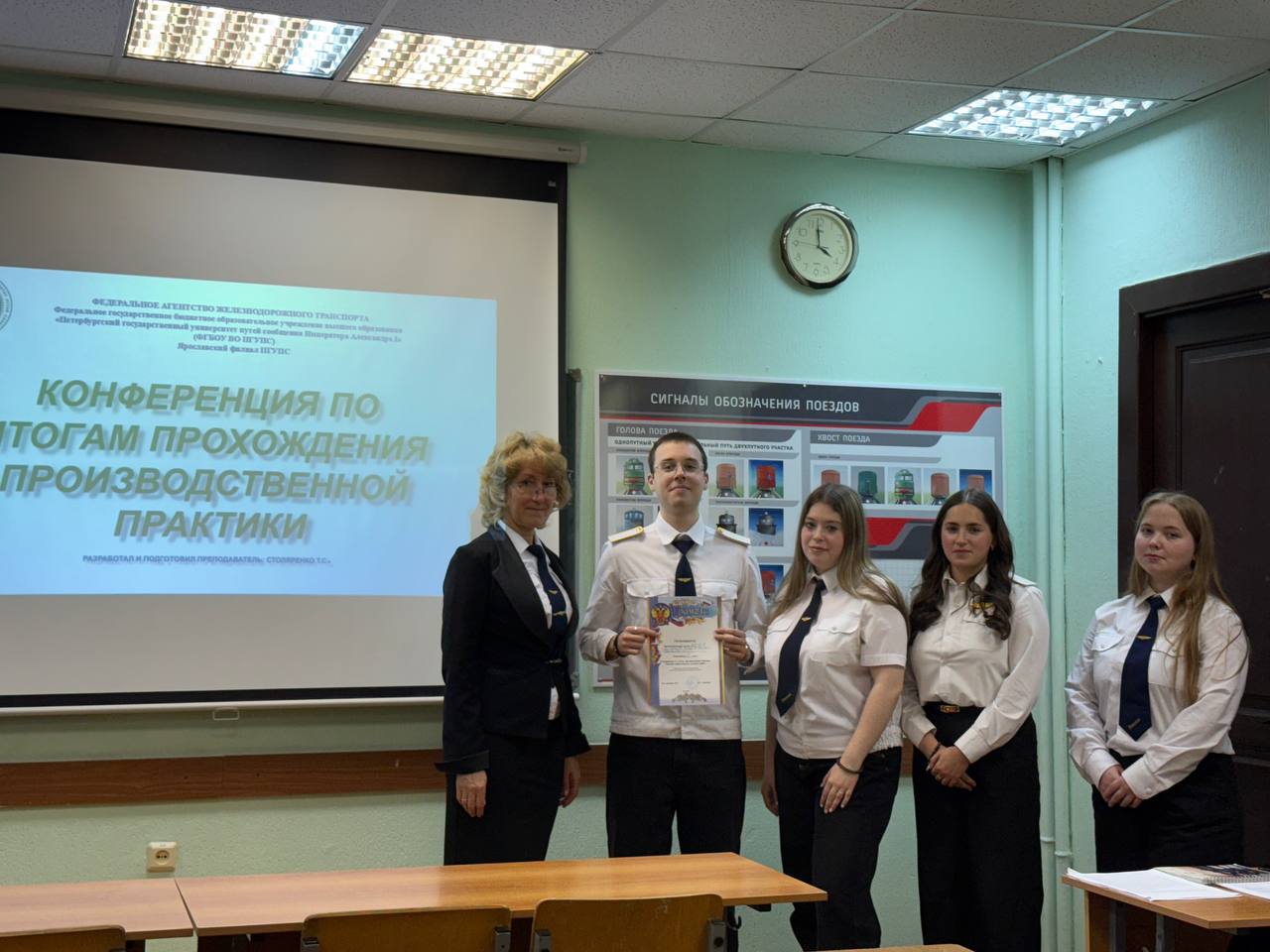 Особо хотелось бы отметить креативный подход к подготовке отчета по производственной практике обучающихся группы ЯРОП 311(150-Д-11) Мастеровой Анастасии, Травина Ивана, Уляшевой Евгении, Трубиновой Карины — место прохождения практики станция Приволжье Северной железной дороги.