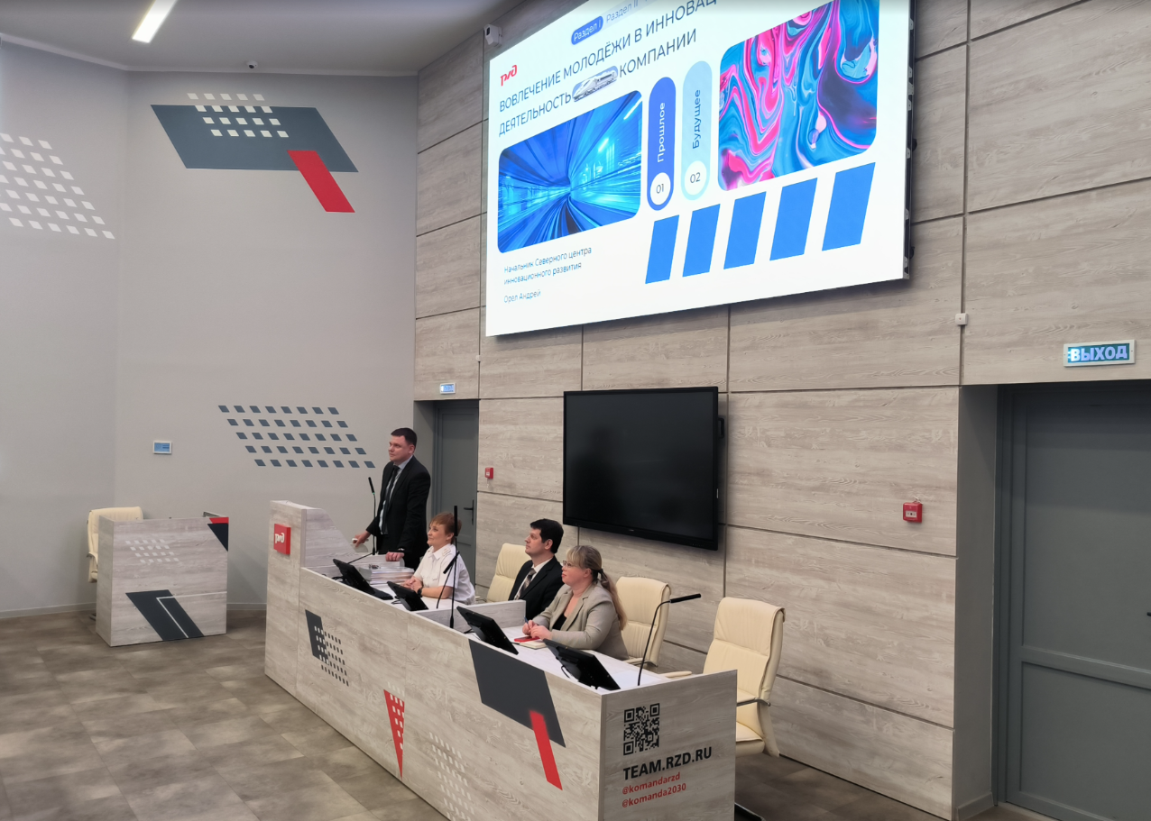 Андрей Геннадьевич, также представил интересную презентацию и раскрыл понятие инновации, привел интереснейшие исторические факты, указал на значимость инновационного развития и поддержку этого направления президентом РФ. Рассказал о масштабности этого направления — в компании РЖД созданы 16 инновационных площадок. Это инновационная система, которая объединяет в себе передовые технологии и железнодорожный транспорт.